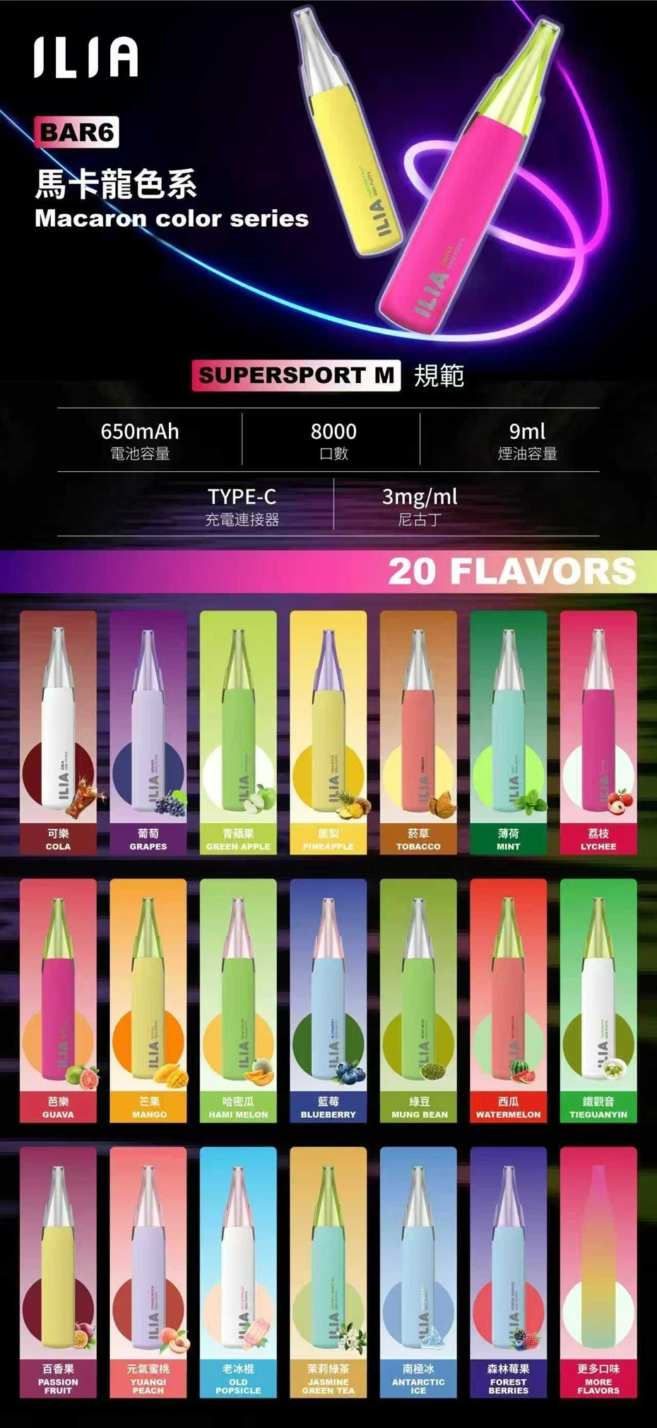 ILIA BAR抛弃式6代鴨嘴獸 8000口 一次性拋棄式